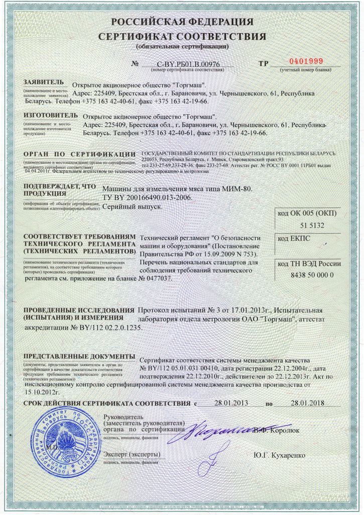 Мясорубка выпускается в исполнении УЗ по ГОСТ 15150-69 для эксплуатации при температуре от плюс 1 до плюс 40°С.