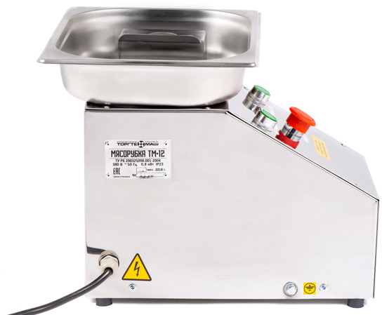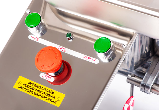 Деформация агрегата исключена ввиду использования при его изготовления надёжного материала – массивной нержавеющей стали. Руки персонала защищены предохранителем, который блокирует свободный доступ к вращающемуся шнеку.