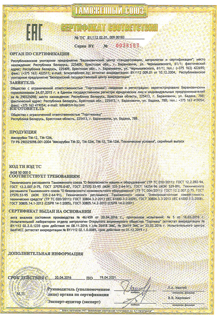 Мясорубка Торгтехмаш ТМ-12 с системой ножей Unger предназначена для измельчения мяса и рыбы на фарш, повторного измельчения котлетной массы и набивки колбас на предприятиях общественного питания.