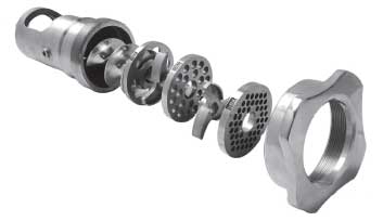 Для получения фарша разной степени измельчения мясорубка снабжается набором решеток с различным диаметром отверстий.