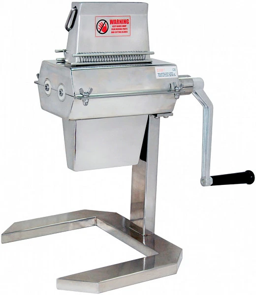 Представляет собой стационарное настольное устройство, рабочая головка которого оснащена двумя валками, на каждом из них имеется 37 лезвий. Валки закрыты защитной крышкой с загрузочным отверстием.