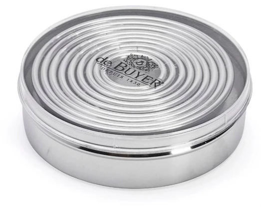 Набор резаков из 9 круглых форм De Buyer 3323.00N используется на предприятиях общественного питания и торговли, в частных домах и квартирах для нарезки изделий нужного диаметра, для холодной формовки и сборки тортов и прочих десертов.