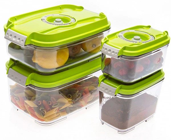 Набор вакуумных контейнеров Status VAC-REC-Smaller Green используется для компактного хранения продуктов, позволяя экономить пространство.