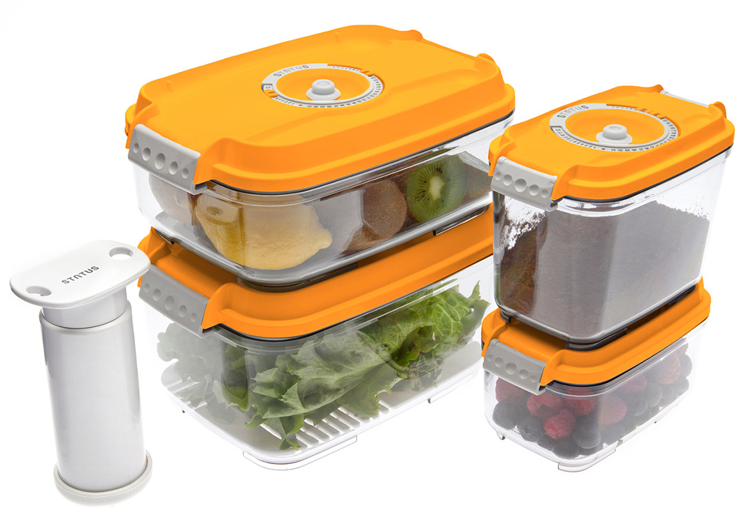 Набор вакуумных контейнеров Status VAC-REC-Smaller Orange используется для компактного хранения продуктов, позволяя экономить пространство.