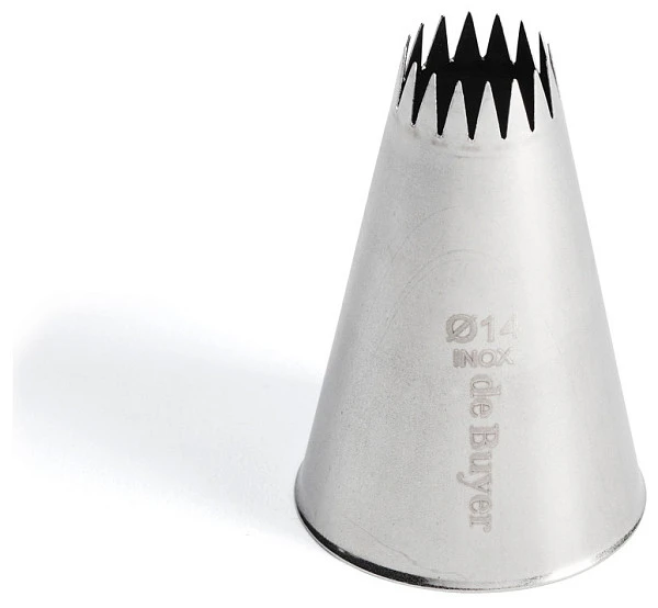 Насадка для кондитерского мешка De Buyer 2116.14 применяется в кулинарии для декорирования тортов, пирожных и других десертов.