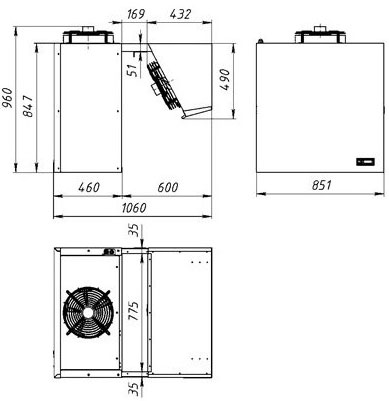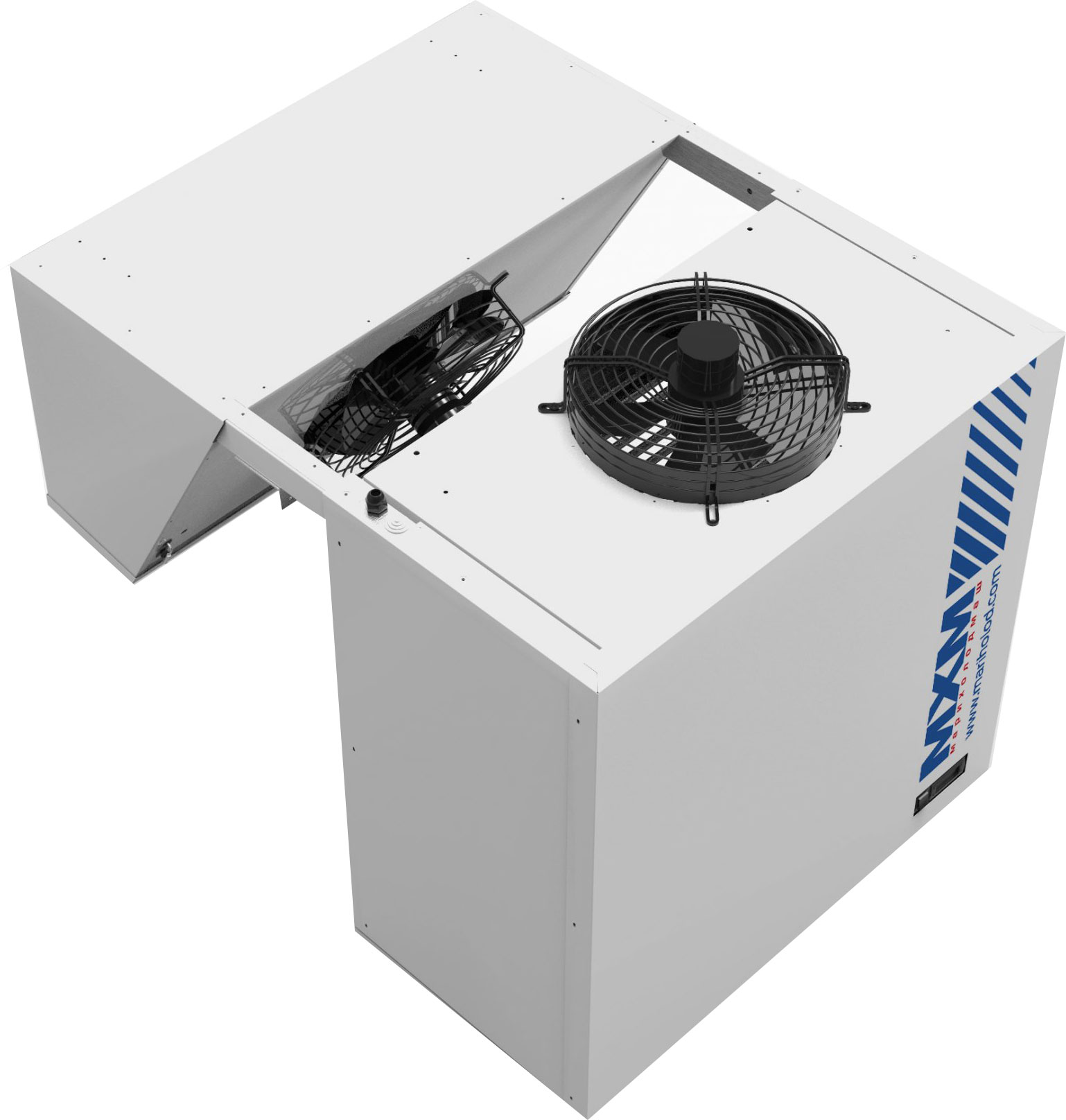 В стандартную комплектацию моноблока входит: высокоэффективный конденсатор, вентилятор обдува, компрессор, фильтр-осушитель, электрический блок управления, ванна сбора и выпаривания конденсата, медно-алюминиевый испаритель, электрический ТЭН оттайки испарителя, поддон сбора конденсата.