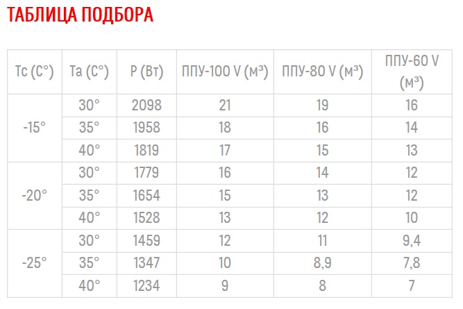 Холодопроизводительность от 1234 до 2098 Вт