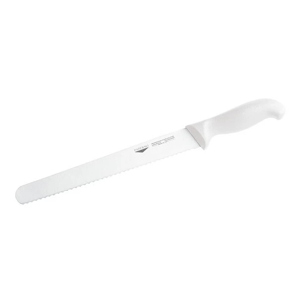Нож для хлеба Paderno 18028W30 имеет достаточно крепкое и острое зубчатое лезвие, благодаря которому, мягкий, свежий хлеб с хрустящей корочкой можно нарезать идеальными ломтиками. Нож невероятно ловко справляется с мягкими фруктами в твердой оболочке и с только что испеченными круассанами. Специальное лезвие с зубчиками очень устойчиво в процессе нарезания, не соскальзывает и не соскакивает.
