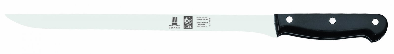 Нож для нарезки Icel 30см TECHNIC 27100.8617000.300 используется на предприятиях общественного питания и торговли, а также в домашних условиях для филигранного слайсирования продуктов средней плотности: охлажденного и готового мяса и рыбы, гастрономии, морепродуктов и деликатесов.
