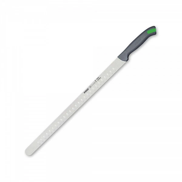 Нож-слайсер для нарезки рыбы Pirge 30 см отличается длинным тонким лезвием.