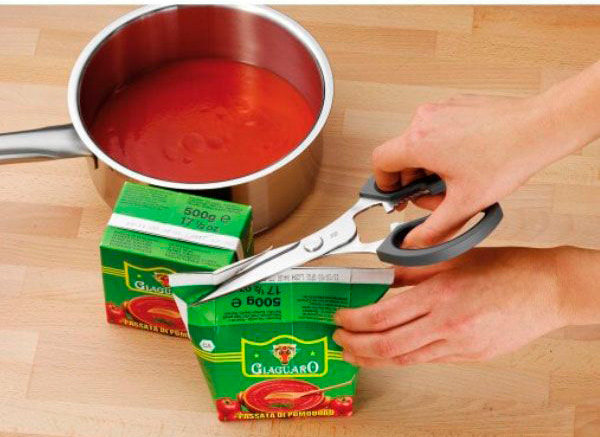 Ножниц выполнены из нержавеющей стали 18/10, ручки из высококачественного пластика. Эргономичная ручка с приятным и мягким ощущением. Пластик предотвращает неприятные точки давления. Встроенная открывалка для винтовых крышек.