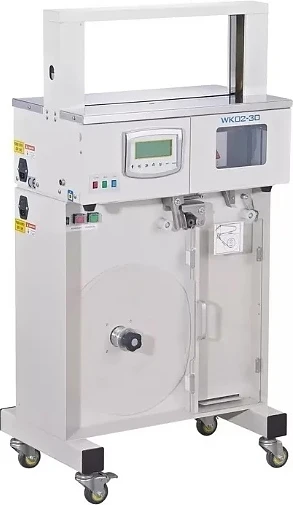 Обандероливающая машина Hualian Machinery WK02-30B предназначен для стягивания при помощи специальной бандерольной ленты разнообразной продукции.