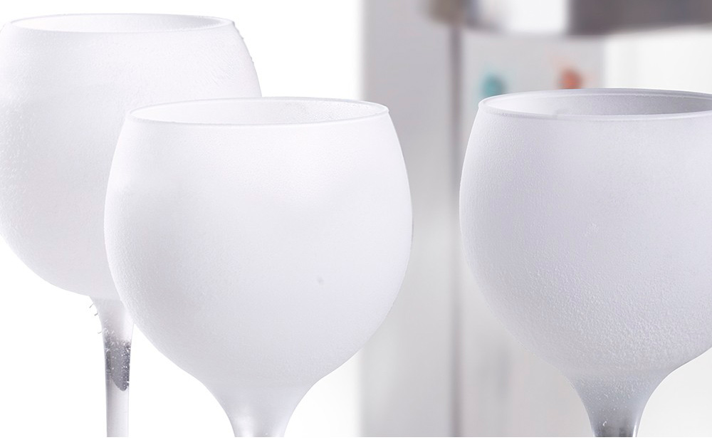Перед подачей фужер замораживается на глазах клиента, в считанные секунды покрывается тончайшим слоем льда и инея, превращая его в волшебный ледяной бокал! При этом, лед испаряется очень медленно, не разбавляет напиток водой, и, не портит его вкусовые и ароматические свойства.