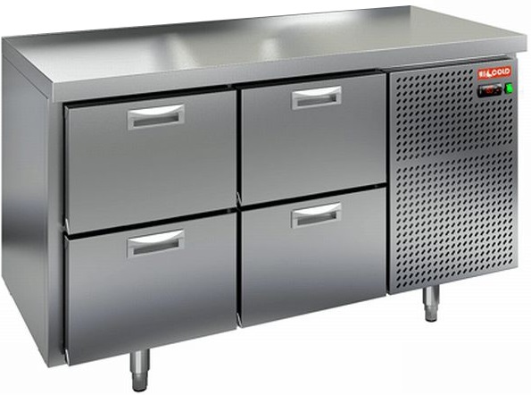 Охлаждаемый стол Hicold GN22/TN O с 4 ящиками и боковым расположением агрегата предназначен для обработки ингредиентов для приготовления блюд, а также кратковременного хранения скоропортящихся продуктов и напитков на предприятиях общественного питания и торговли.