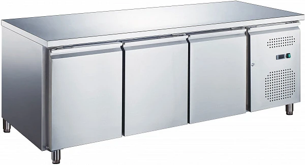 Стол с искусственным охлаждением внутреннего объема (встроенный холодильный шкаф) изготовлен из нержавеющей стали.