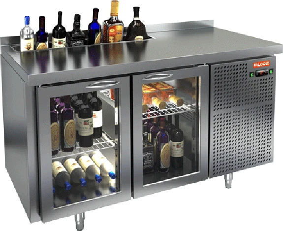 Охлаждаемый стол Hicold SNG 11 HT V с распашными дверцами, с ванной для льда под бутылки, боковым расположением агрегата предназначен для обработки ингредиентов для приготовления блюд, а также кратковременного хранения скоропортящихся продуктов и напитков на предприятиях общественного питания и торговли.