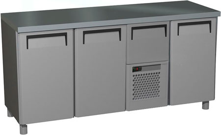 Охлаждаемый стол Полюс T57 M3-1 0430 (Bar-360 Carboma) исполнение "INOX" - универсальное оборудование, используемое на предприятиях общественного питания, совмещающее функции холодильного шкафа и полноценного рабочего стола.