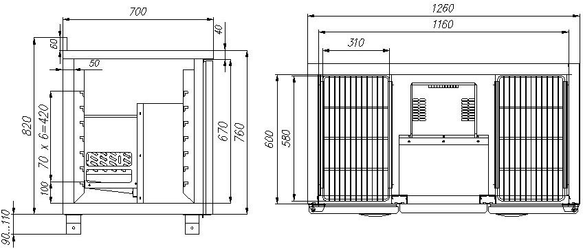 Охлаждаемый стол Полюс T70 M2-1 9006-2 (2GN/NT Полюс 11) с бортом серии 700 RAL ONE SIDE с боковым отсеком для холодильного агрегата предназначен для использования в гастрономических отделах торговых павильонов, столовых, кафе, баров, ресторанов.