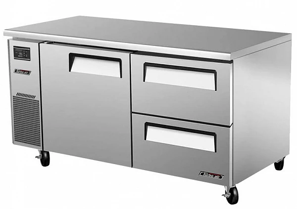 ​Охлаждаемый стол Turbo Air KUR15-2D-2-700 состоит из рабочей поверхности, на которой можно раскатывать тесто и обрабатывать ингредиенты для приготовления блюд, и камеры, предназначенной для охлаждения и кратковременного хранения скоропортящихся продуктов и напитков на предприятиях пищевой промышленности, общественного питания и торговли.