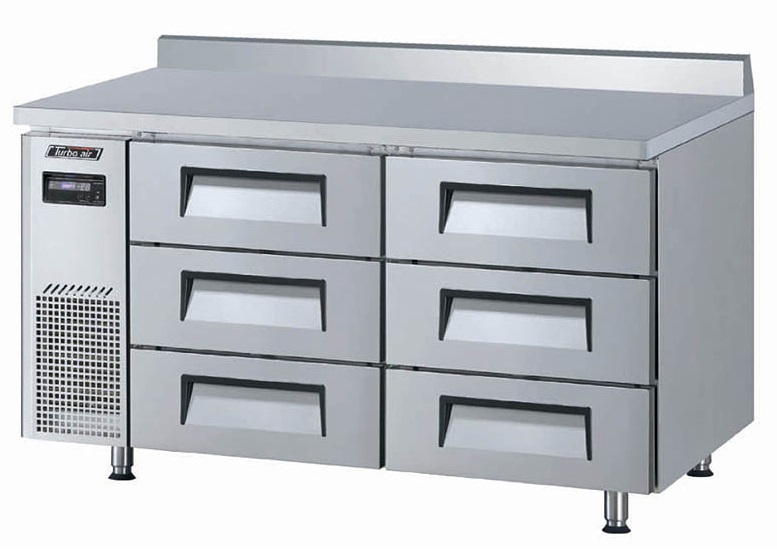 ​Охлаждаемый стол Turbo Air KWR15-3D-6-600 состоит из рабочей поверхности, на которой можно раскатывать тесто и обрабатывать ингредиенты для приготовления блюд, и камеры, предназначенной для охлаждения и кратковременного хранения скоропортящихся продуктов и напитков на предприятиях пищевой промышленности, общественного питания и торговли.