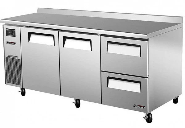 Охлаждаемый стол Turbo Air KWR18-2D-2-700 состоит из рабочей поверхности, на которой можно раскатывать тесто и обрабатывать ингредиенты для приготовления блюд, и камеры, предназначенной для охлаждения и кратковременного хранения скоропортящихся продуктов и напитков на предприятиях пищевой промышленности, общественного питания и торговли.