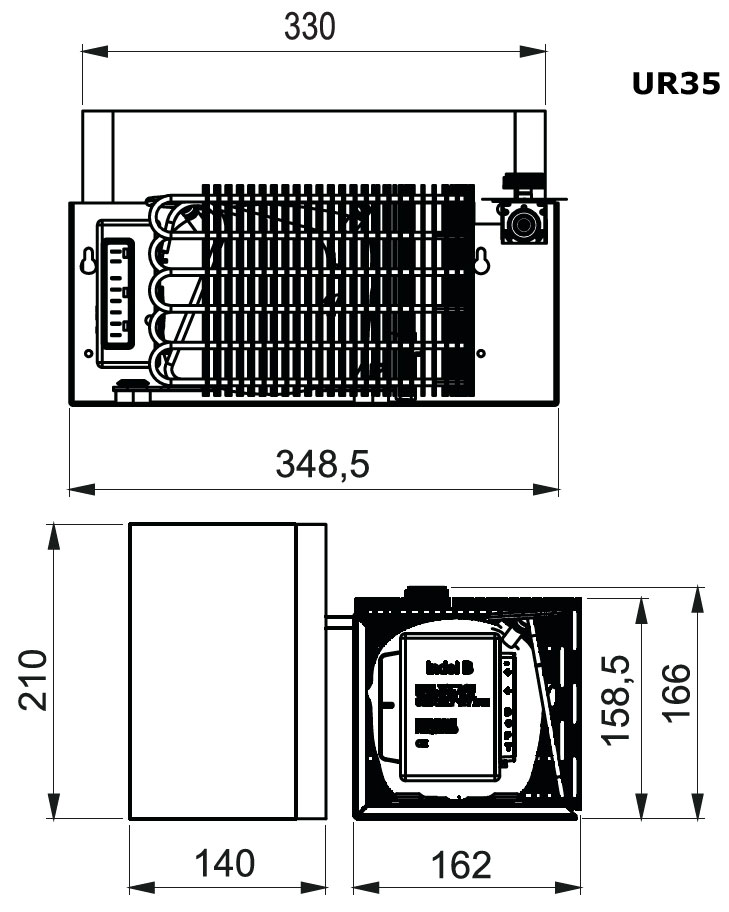 внешние размеры испарителя (ВхШхГ, мм): 210 х 140 х 330