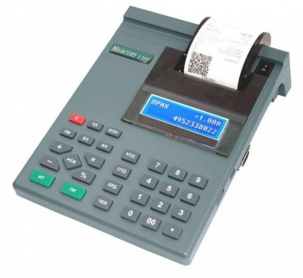 Меркурий-130Ф не выполняет эквайринг. Для приема оплаты карточками понадобится установить аппарат для эквайринга. К кассе можно подключать сканер штрих-кодов, клавиатуру, электронные весы, денежный ящик, флешку.