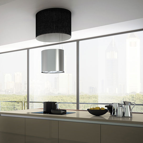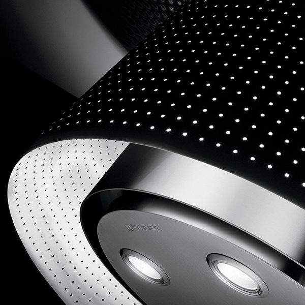 Сочетание прочной нержавеющей стали и более мягкого материала купола вытяжки Kaleidos, вместе с уникальным механизмом подъема и спуска вытяжки, создает замечательный оптический эффект звездного неба на потолке Вашей кухни.