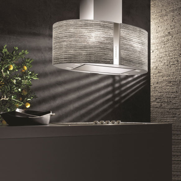 Вытяжка выполнена из высокосортной нержавеющей стали AISI 304 и декорирована стеклянным колпаком Elektra.