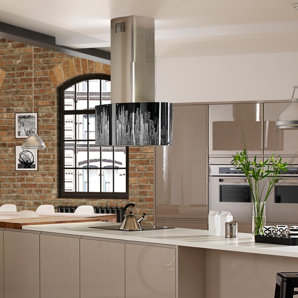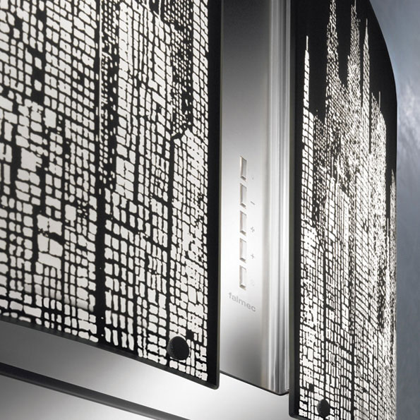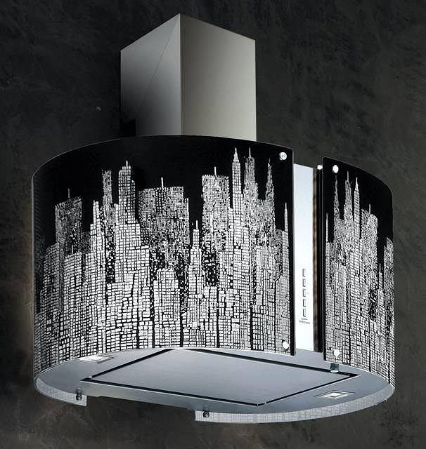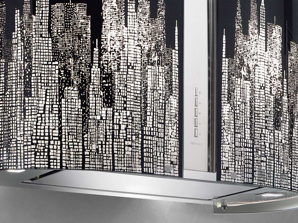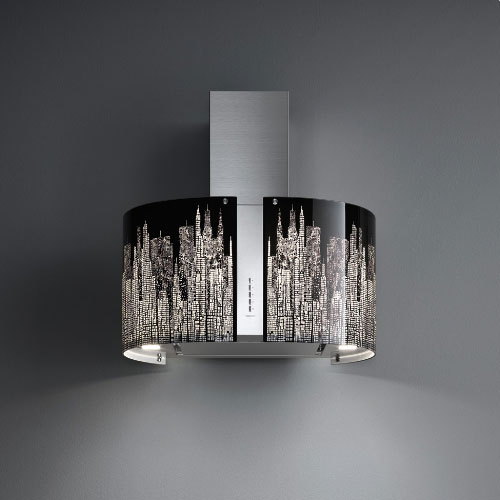 Вытяжка выполнена из высокосортной нержавеющей стали AISI 304 и декорирована стеклянным колпаком Manhattan.
