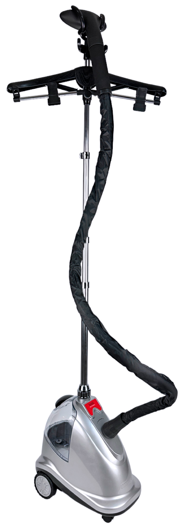 Отпариватель Runzel PRO-330 поставляется с телескопической стойкой, которая является идеальным решением для удобного размещения вашей одежды. Складная вешалка и захваты для брюк на стойке позволяют вам удобно расположить вашу одежду на "плечиках" и растянуть ее для более эффективной обработки паром. Это особенно полезно, когда вы хотите отпарить длинные платья или брюки.
