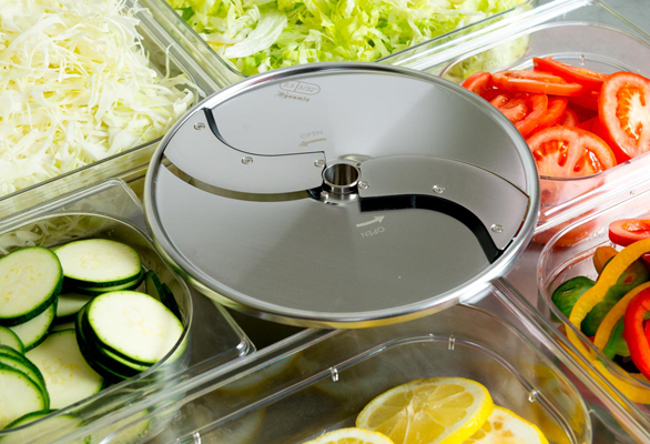 Широкий выбор нарезок: большой выбор дисков из нержавеющей стали для нарезки ломтиками, теркой, жульеном, кубиками или приготовления картофеля фри.