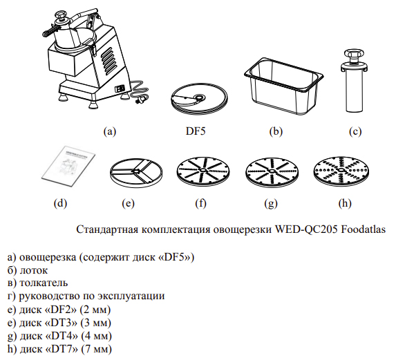 Комплект поставки ножей слайсер 2 и 5 мм, шинковка 3, 4 и 7 мм
