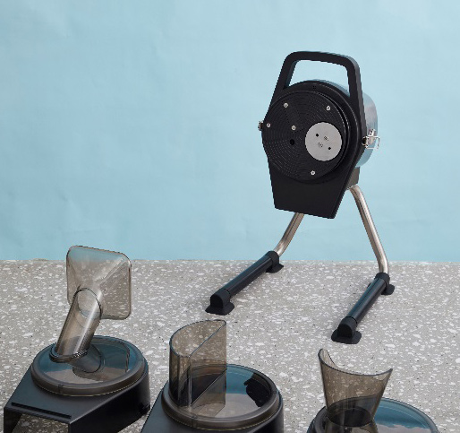 Овощерезка имеет D-образный бункер с загрузочным отверстием 9*3,6 см; конусообразный бункер с основанием размером 9,3*7 см, загрузочным отверстием диаметром 4,2 см; приспособление для мелких овощей и фруктов диаметром 3,8 см с толкателем.