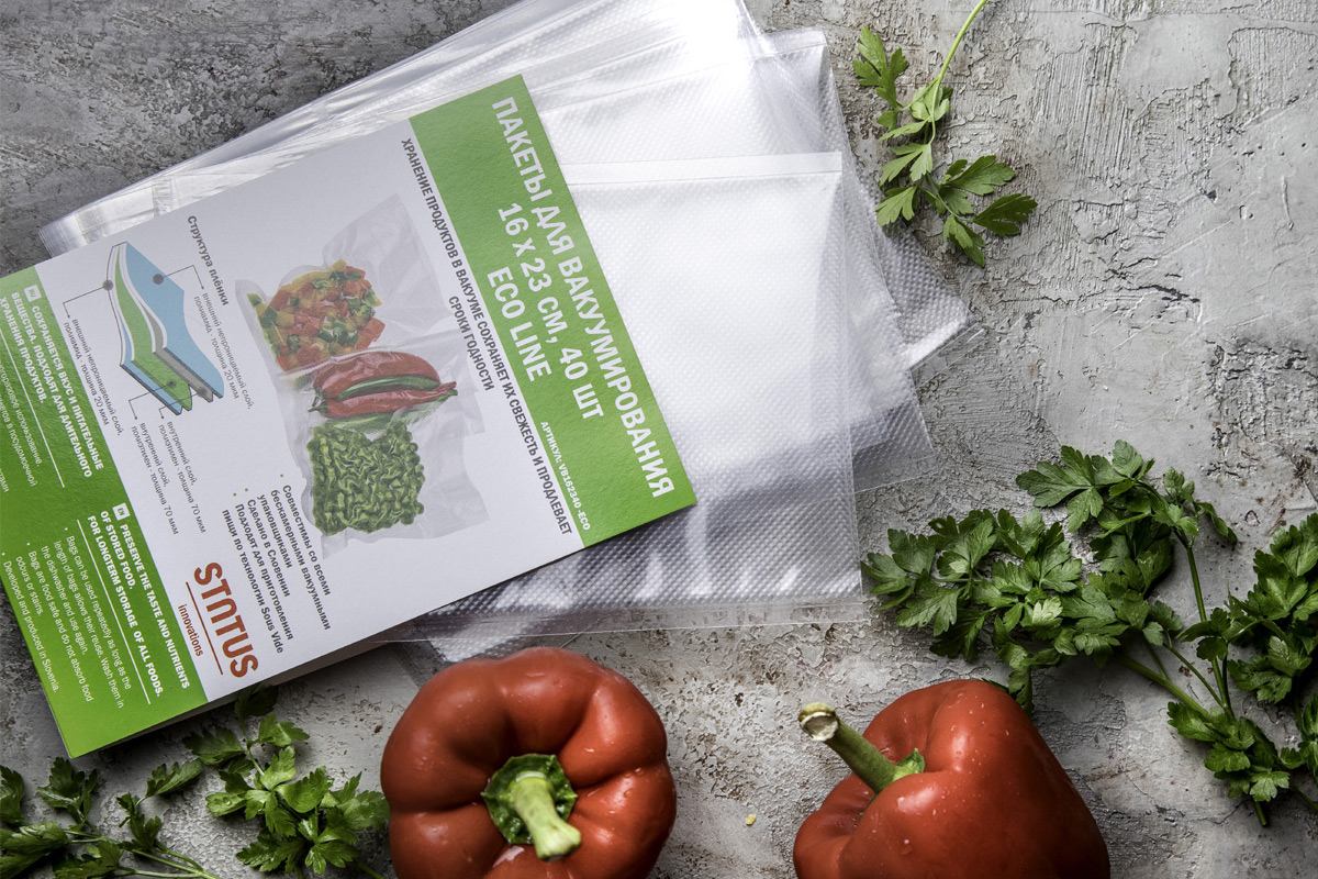 Вакуумные пакеты и рулоны STATUS производятся в Словении. Все используемые материалы европейского производства со всеми необходимыми сертификатами. Наши пакеты и рулоны для вакууматоров безопасны для продуктов питания и не передают продуктам посторонний вкус и запах. Для вас это означает, что вы можете использовать их для хранения всех видов продуктов, не задумываясь, и ваша еда сохранит свой естественный вкус и аромат. Наши вакуумные пакеты также подходят для заморозки и приготовления пищи.