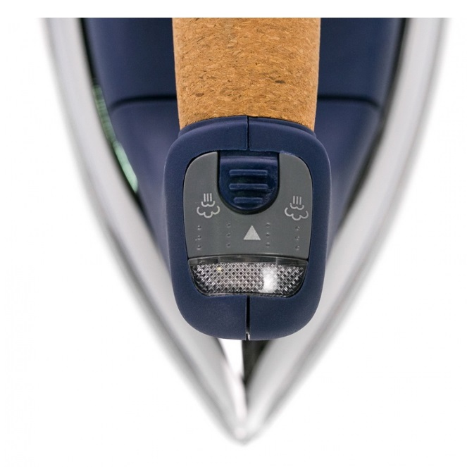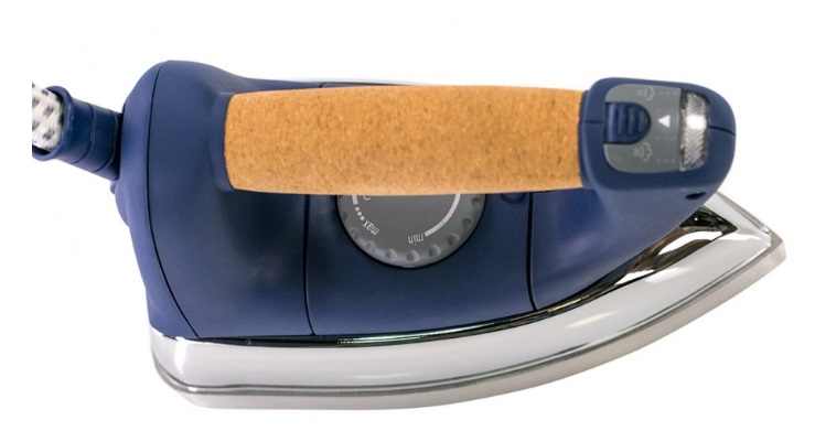 Пробковая ручка позволяет утюгу удобно сидеть в руке. Он тактильно приятен и принимает руку человеческой ладони при работе с ним.