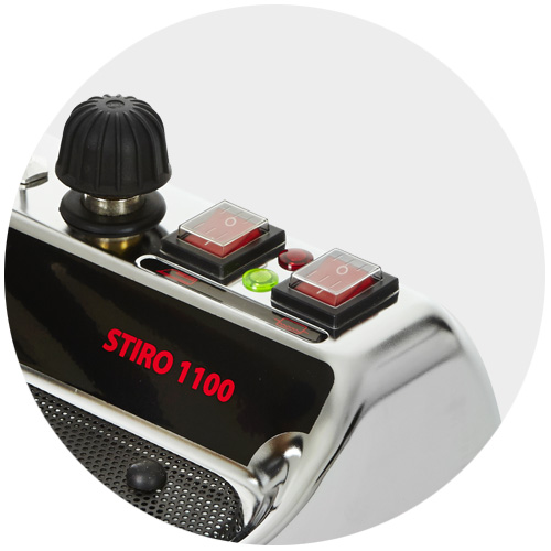 Mie Stiro 1100 Inox подает пар под давлением до 3,5 Бар, позволяя разглаживать любые ткани, даже самые плотные и устойчивые к тепловой обработке.