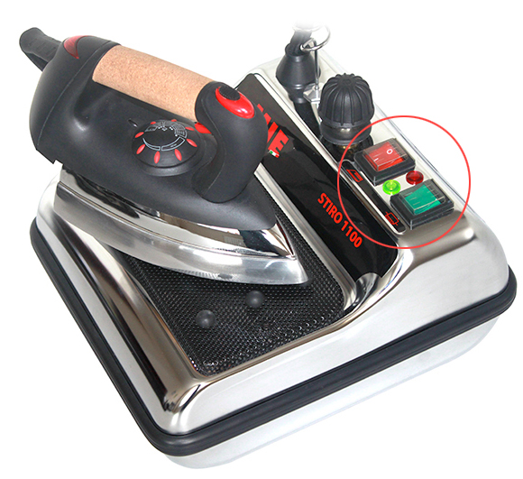 - На утюге парогенератора Mie Stiro 1100 Inoxнаходятся две кнопки подачи пара. Одна расположена сверху ручки утюга, другая – под ручкой, при глажении эта копка оказывается под указательным пальцем правой руки, что очень удобно для обеспечения непрерывной подачи пара.