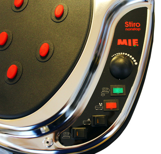 Модель Mie Stiro Nonstop оснащена регуляторами температуры и силы подачи пара. Контролировать температуру и пар особенно важно при глажении деликатных вещей. Шелк, атлас, шерсть, велюр, изделия с вышивкой и стразами эффективнее гладить, не касаясь поверхности подошвой утюга. Рабочее давление пара устройства — 5 бар, что позволяет Mie Stiro Nonstop разглаживать вещи, не касаясь их подошвой утюга, не оставлять блеска вдоль швов и избегать заломов на ткани.