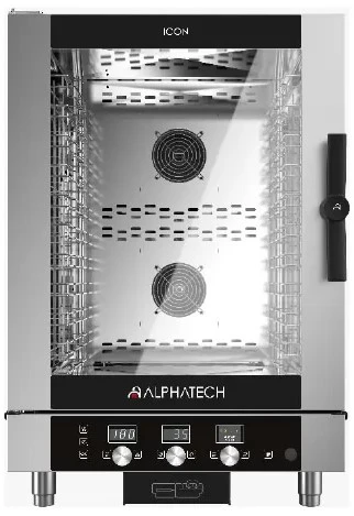 Пароконвектомат Alphatech ICET101E+ILCS2+ISC04 предназначен для выпечки изделий из теста и приготовления различных блюд и полуфабрикатов на предприятиях общественного питания и торговли. Модель оснащена автоматической регулировкой насыщения пара в варочной камере и автореверсом (автоматической инверсией направления вращения крыльчатки) для идеальной равномерности готовки. Элегантный и функциональный дизайн в современном стиле послужит украшением кухни.