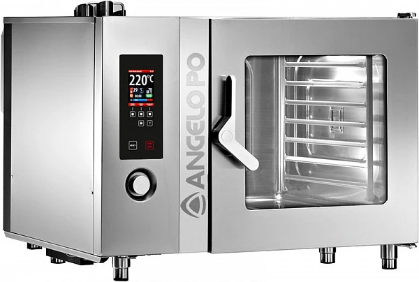 Пароконвектомат Angelo Po COMBISTAR FX82E3T предназначен для приготовления различных блюд методом обработки паром и горячим воздухом на предприятиях общественного питания и торговли. Такое оборудование может заменить плиту, жарочный и духовой шкаф, конвекционную печь, опрокидывающуюся сковороду, пищеварочный котел и др. Благодаря специальным технологиям запах приготовляемой пищи не распространяется в помещениях. Корпус выполнен из нержавеющей стали AISI 304, рабочая камера - из полированной нержавеющей стали AISI 316, электрические нагревательные элементы - из сплава Incoloy 800.