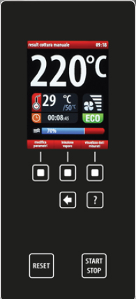 Конвекция от 10 ° С до 300 ° С и влажность от 0 до 100% / Комбинированное приготовление с 30 ° С до 250 ° С и пар от 10 до 90 % / Паровое приготовление от 30 ° С до 125 ° С.