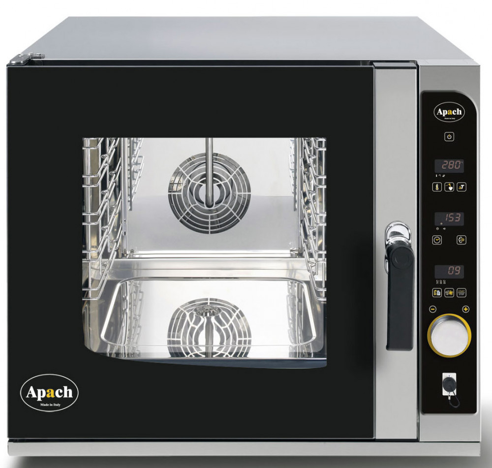 Пароконвектомат Apach AP5.23D с цифровым* управлением способен заменить несколько типов теплового оборудования и значительно ускоряить процесс приготовления блюд в кафе, столовых и отделах кулинарии в супермаркетах.