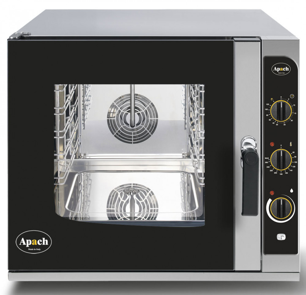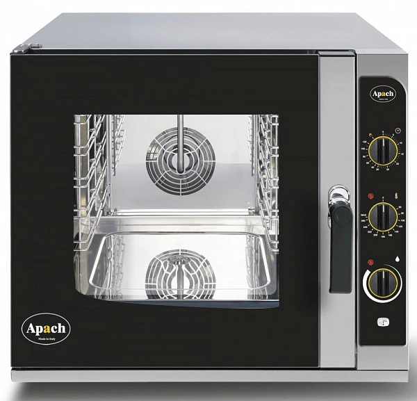 Пароконвектомат Apach AP5M.23 с механическим* управлением способен заменить несколько типов теплового оборудования и значительно ускоряить процесс приготовления блюд в кафе, столовых и отделах кулинарии в супермаркетах.