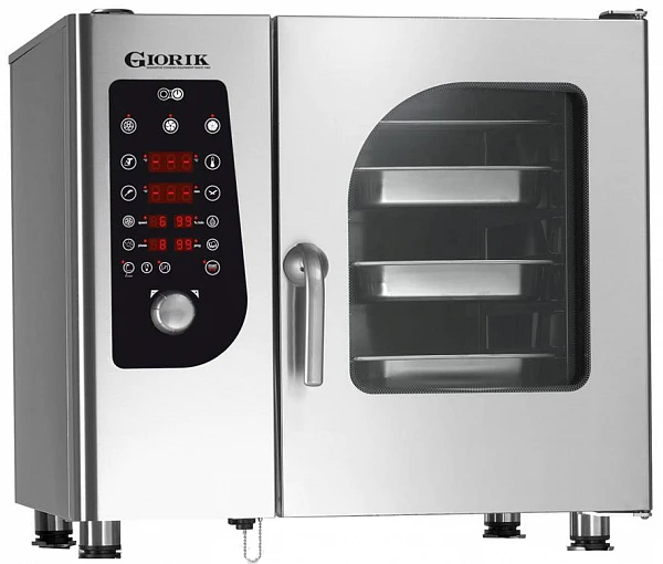 Пароконвектомат с инжектором и электронной программируемой панелью управления.