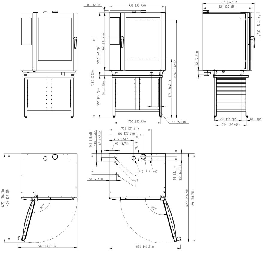 В базовую комплектацию пароконвектомата Blue Vision входит автоматическая система очистки, клапан для отвода пара и четырехзонный температурный щуп.