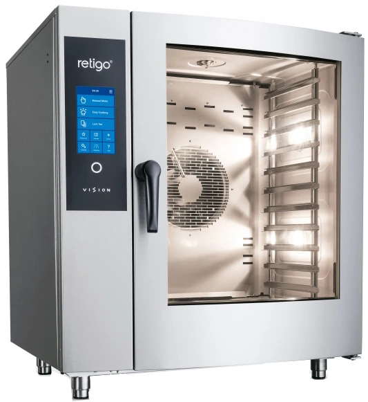 Пароконвектомат Retigo B1011IG Vision II серии Blue Vision (правостороннее открывание дверцы) является универсальным устройством приготовления пищи, включая полные меню.