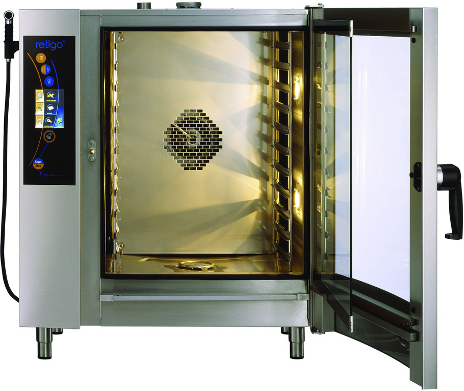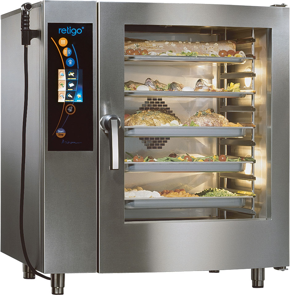 RETIGO Blue Vision является высшим типоразмером серии конвектоматов RETIGO Vision. Конвектоматы разработаны таким образом, чтобы обеспечили все необходимые функции для требовательных заказчиков. Управление осуществляется с помощью сенсорной панели, которая обеспечивает быстрый доступ ко всем основным функциям. Все модели в базовой конфигурации оснащены функцией автоматической мойки, а также Easy Cooking, клапаном для отвода пара и 4-х зонным температурным щупом.