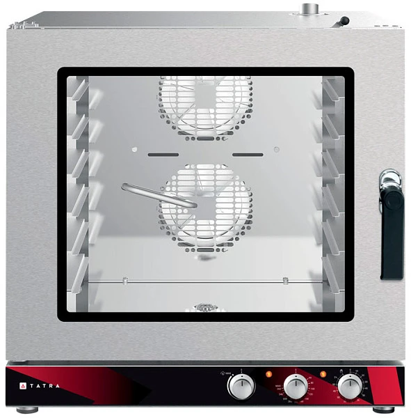 Пароконвектомат Tatra TB06M1L пекарский предназначен для использования на предприятиях общественного питания для выпекания различных кондитерских и хлебобулочных изделий из свежего и замороженного теста с применением режимов сочетания конвекции и пара.