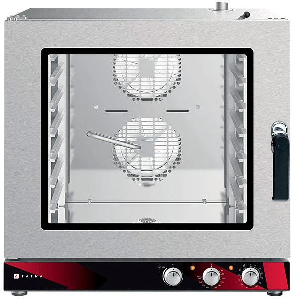 Пароконвектомат Tatra TC07M1L предназначен для использования на предприятиях общественного питания для приготовления различных блюд с применением режимов сочетания конвекции и пара. Фактически пароконвектомат может заменить собой несколько типов теплового оборудования, таких как конвекционная печь, жарочный шкаф, пароварка, плита и сковорода.